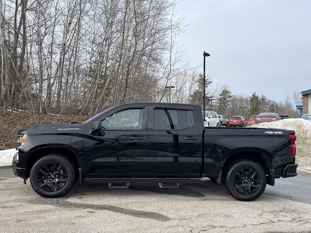 Thank you for stopping by our virtual showroom! This 2023 Chevrolet Silverado 1500 Custom offered in Black will make a great addition to your family or business! Be sure to take note of all this vehicle has to offer: Custom Convenience PackageRemote Vehicle Starter SystemElectric Rear-Window DefoggerEZ Lift Power Lock and Release TailgateLED Cargo Area LightingTheft Deterrent System (unauthorized Entry)Preferred Equipment Group 1CX10-Way Power Driver Seat with LumbarRear 60/40 Folding Bench Seat (folds Up)Power Front Windows with Passenger Express DownPower Rear Windows with Express DownDeep-Tinted GlassRemote Keyless EntryPower Front Windows with Driver Express Up/down40/20/40 Front Split-Bench SeatColor-Keyed Carpeting Floor CoveringFront Rubberized Vinyl Floor MatsRear Rubberized-Vinyl Floor MatsBluetooth For PhoneCompassElectronic Cruise Control120-Volt Instrument Panel Power OutletElectrical Steering Column LockManual Tilt Wheel Steering ColumnSingle-Speed Transfer CaseCustom Value PackageChevy Safety AssistWireless Phone ProjectionStandard TailgateCloth Seat TrimSiriusXM RadioDual Rear USB Ports (charge Only)3.5" Monochromatic Display Driver Info CenterOnStar and Chevrolet Connected Services CapableHD Rear Vision CameraFront Frame-Mounted Black Recovery Hooks Safety and Security Forward collision mitigation - Forward thinking. You look away for just a second and suddenly the vehicle in front of you has stopped. That's when the forward collision mitigation system comes to life. When it senses an impending impact, it will activate a combination of features to help prevent or reduce the severity of an accident. Forward collision mitigation is always looking ahead. Pedestrian impact prevention - An extra step toward safety. Pedestrians don't always stop, look, and listen, but with Pedestrian Impact Prevention, your vehicle is equipped to better see them and avoid them. This system constantly monitors the road ahead to identify and track pedestrians. It projects that image to an interior display screen, AND should an impact become likely, Pedestrian impact prevention takes steps to avoid a collision.Technology and Telematics Smart device mirroring - Smartphone, meet smart car. You can control your device through your vehicle's infotainment system. Smart device mirroring brings together safety and convenience by making it easier to find what you're looking for while keeping your eyes on the road. Mobile hotspot - WiFi on the fly. Connect your devices to the Internet through your vehicles private mobile hotspot and take the internet wherever your journey takes you, without eating up your data allowance. Find the hotspot with mobile hotspot. Mobile hotspot - WiFi on the fly. Connect your devices to the Internet through your vehicles private mobile hotspot and take the internet wherever your journey takes you, without eating up your data allowance. Find the hotspot with mobile hotspot. EMISSIONS, CONNECTICUT, DELAWARE, MAINE, MARYLAND, MASSACHUSETTS, NEW JERSEY, NEW YORK, OREGON, PENNSYLVANIA, RHODE ISLAND, VERMONT AND WASHINGTON STATE REQUIREMENTS, ENGINE, 2.7L TURBO HIGH-OUTPUT, TRANSMISSION, 8-SPEED AUTOMATIC, ELECTRONICALLY CONTROLLED, REAR AXLE, 3.42 RATIO, WHEELS, 20" X 9" (50.8 CM X 22.9 CM) HIGH GLOSS BLACK PAINTED ALUMINUM, TIRES, 275/60R20SL ALL-TERRAIN, BLACKWALL, BLACK, SEATS, FRONT 40/20/40 SPLIT-BENCH, JET BLACK, CLOTH SEAT TRIM, AUDIO SYSTEM, CHEVROLET INFOTAINMENT 3 SYSTEM, AUTO-LOCKING REAR DIFFERENTIAL, WHEELHOUSE LINERS, REAR, LPO, MOLDED SPLASH GUARDS, BLACK, LICENSE PLATE KIT, FRONT, STEERING COLUMN, MANUAL TILT AND TELESCOPING, NOT EQUIPPED WITH STEERING COLUMN LOCK, SEE DEALER FOR DETAILS, NOT EQUIPPED WITH USB PORTS, REAR, SEE DEALER FOR DETAILS One Owner! Don't miss out, come see us at 260 HOGAN RD BANGOR ME 04401 or call us at (866) 240-4451 and schedule a test drive today. We look forward to seeing you soon!